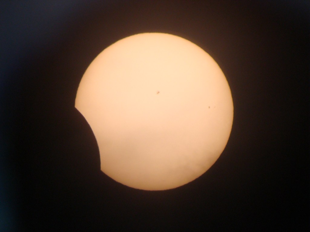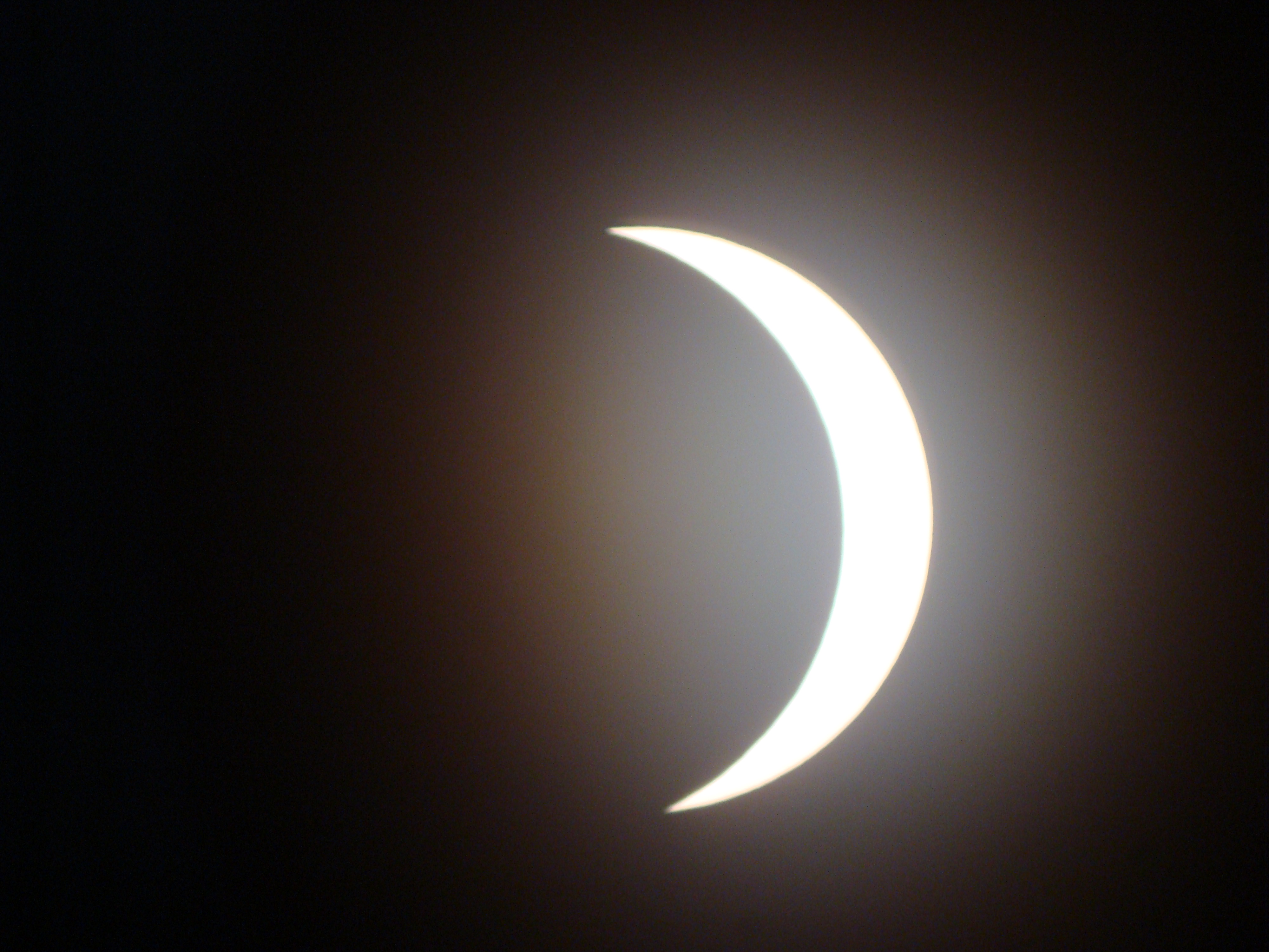 Well, it’s on! All I can do is wait for opportunities between the clouds. Drinking iced tea, passing the ole welding helmet around like it was a fat doobie, and taking pics when I can. π FYI, the pics that are whitish, means the cloud cover was thick. The yellowish pics means the cloud cover wasn’t as bad. I’m not sure it was ever perfectly clear.